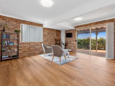 The brick and tile home has high ceilings to give that feeling of spaciousness, and a fully renovated kitchen with breakfast bar, soft closing cupboard doors and drawers, Caesar stone benchtop, hybrid flooring, LED lighting.
