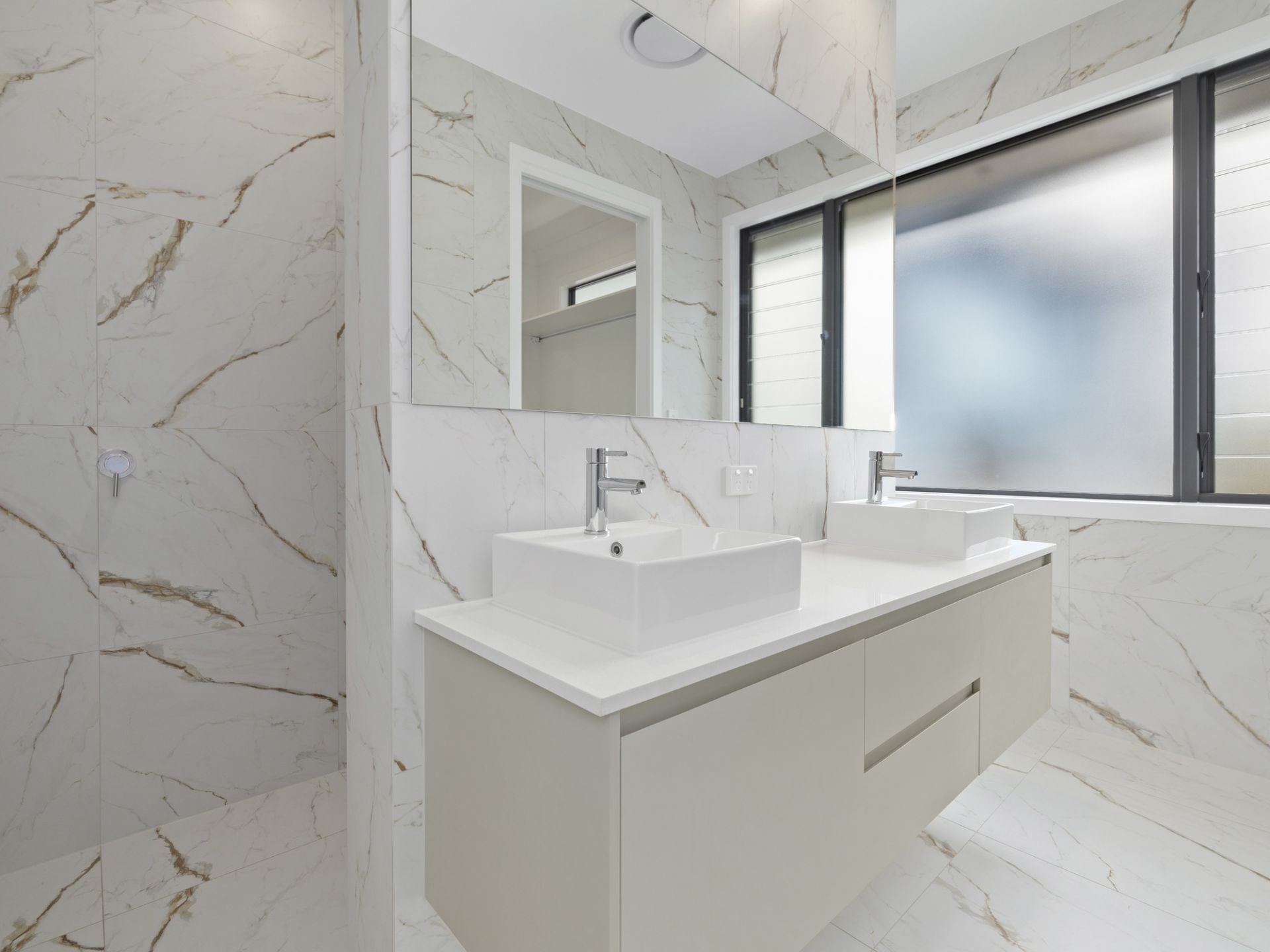 The lower level features a two-bedroom potential granny flat with its own private entrance. It includes a modern wet bar, open-plan living and dining area, bathroom with internal laundry, ample storage, and its own alfresco space; ideal for extended family and/ or guests.