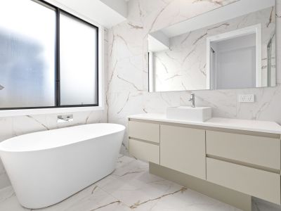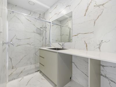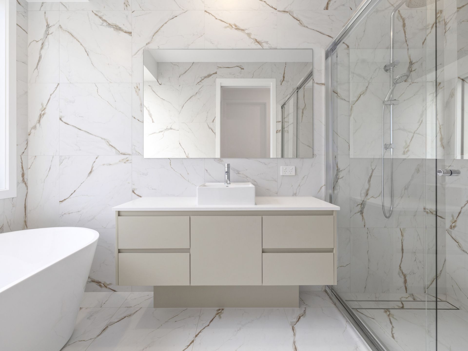• Sophisticated bathrooms with floor-to-ceiling tiles.