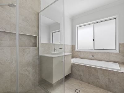 This brand new 2 story residence with professional interior design adds flavour to this quality area with it's balcony and aluminium balustrading off the main bedroom upstairs.