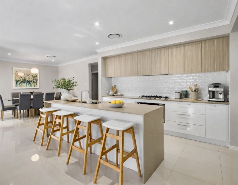 As you move through the home, you'll find a spacious open-plan living and dining area that forms the true heart of the property. The contemporary kitchen features gas cooktops and a well-equipped butler's pantry, making it ideal for family life and entertaining alike. Large sliding doors connect seamlessly to the outdoor entertaining area, where a magnesium pool and landscaped gardens create a private, low-maintenance space to unwind with family and friends.